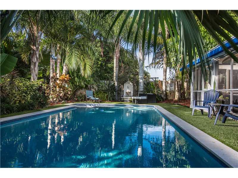 This recently-renovated home in the heart of Fort Lauderdale offers natural light throughout and incorporates the tropical beauty of its surroundings, with large picture windows presenting a lushly landscaped garden, the perfect space for entertaining gue sts and family. The oversized backyard is a private hideaway belying its suburban setting. A chef's kitchen includes stainless steel appliances and granite countertops. Two of the bedrooms feature built-in wall units camouflaging queen-sized murphy beds.