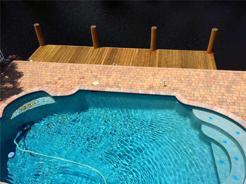 Fantastic newer waterfront home. Huge rooms w high ceilings & amazing baths. Large 2nd floor mstr w cov. balcony. Gameroom and loft w daybar. 3 lower beds w 2nd mstr suite. POURED concrete walls w impact glass. Glazed barrel roof. Ex large garage w 10' do ors. 1/2 bath in garage. Designer kitchen with LED lighting and double ovens. On demand hot water. Gas cooktop. Entire home wired for technology. Salt pool. Safe room. New dock and seawall w/water/elec. Amazing value new construction. Must See!