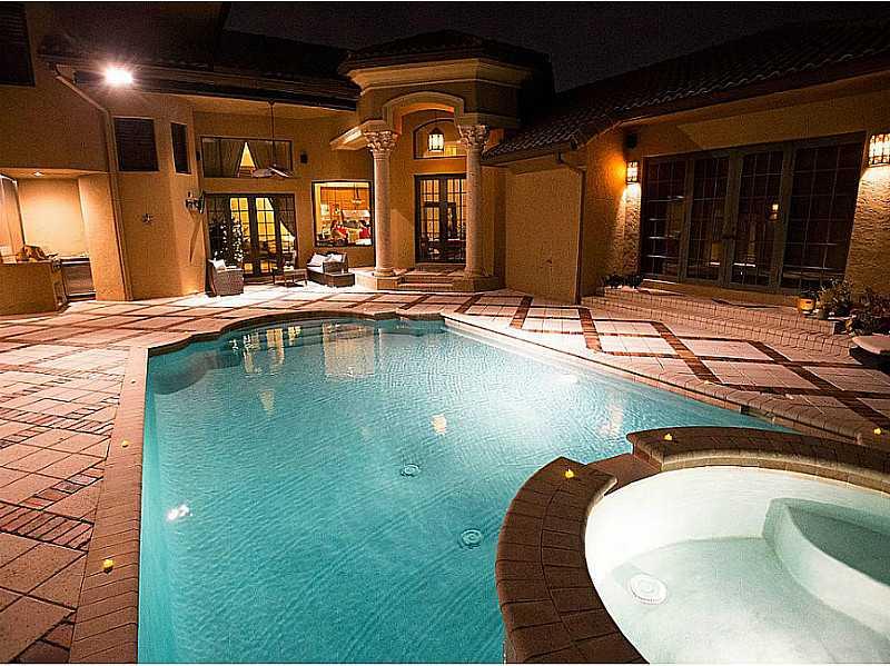 Sited on a fully fenced corner waterfront lot, this stunning courtyard home in prestigious Hawks Landing begins with a dramatic entry into luxury living. With hand-carved hickory wood and marble floors throughout. the stunning interior boasts a wide open Great Room with formal dining and oversized gourmet kitchen w/6-burner gas cooktop, double stacked custom cabinets, granite tops, island w/wine cooler, all SS appliances Viking & SubZero. Staircase with iron railing, built-In bbq, Just painted ext.,more.