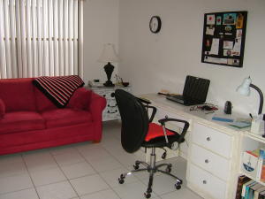 Charming pristine 3 bedroom 2 bath home with 2 car garage in perfect-sized neighborhood with community pool. Quiet street, eastern exposure on patio. Back and side yards for pets or children to play. Tile floors, high ceilings,very clean. Breakfast room off kitchen. 3rd bedroom now used as den but it has closet. Easy access to shopping and major routes. Roof 2003. Ready for you to move in. Lot was originally 50 x 105. 25 ft. rear easement was quit-claimed to owner: OK to plant but no construction on that part. 50 x 130 = 6500 sq. ft. lot.