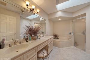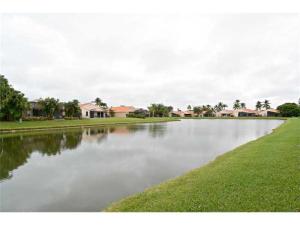 Amazing 3 bedroom 2 bath lake front home in the gated community of Brentwood. Corner unit with large open floor plan and vaulted ceilings. Home is completely updated with diagonally laid rectified porcelain tiles throughout. Spacious master suite with double-sink vanity. Hurricane shutters and large screened patio. Brentwood offers a completely remodeled Club House, 2 tennis courts, 2 pools, gym and biking/jogging trail. HOA includes cable/internet, lawn care, exterior painting. Close to major highways, beach, shopping, entertainment, A-rated schools and hospitals.