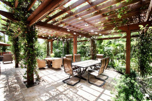 Tropical Paradise is found! Fenced and landscaped property with large outdoor patio w/travertine pavers, landscape lighting and electric gated entrance. The interior features an open floor plan with 18'' tile throughout, French doors, family rm w/tray ceiling, updated kitchen with granite and stainless appliances plus soft close cabinet drawers and updated bathrooms. Also includes all window treatments; blinds and drapes, plus whole house generator. Bonus-2nd bedroom includes Murphy bed. Wonderfully maintained inside and out, come see!