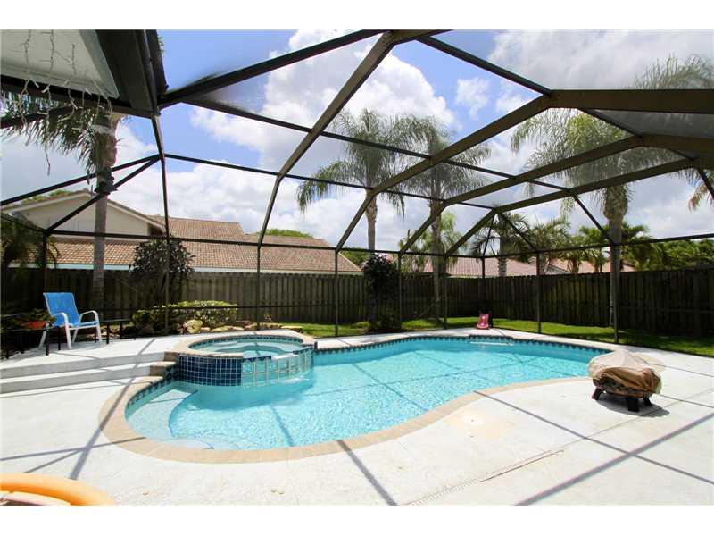 MUST SEE THIS BEAUTY! Move in Ready & Impeccably Maintained Pool Home located in Sought after Fox Run Jacaranda. This Home has amazing curb appeal & is located on a beautiful tree lined street. Grand Double Door Entrance w/ soaring vaulted ceilings. Beau tiful ceramic tile thru out & Kitchen has gorgeous maple cabinets w/ under counter lighting & hand selected Granite Countertops. Master Bedroom is Super Spacious w/Hardwood Flooring & Huge Walk In Closet. We Love the Master Bath too. Pool has heated Spa!!