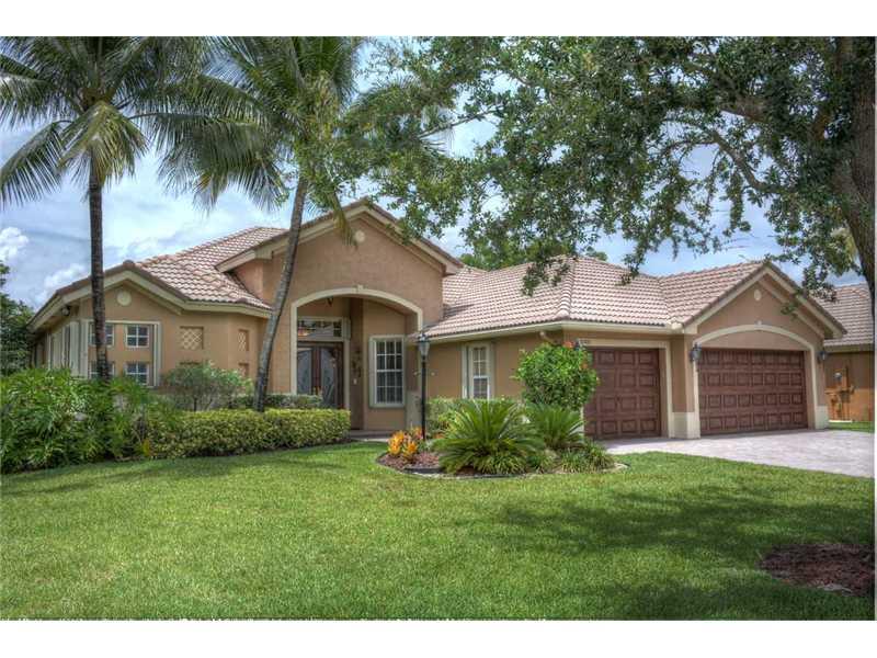 Magnificent water views from this 5 bedroom, 3 bath, heated pool home in the Estates section of Parkland Isles. 3 car garage on a private cul-de-sac! This home features tile throughout living areas, light & bright neutral colors, formal dining room, open eat in kitchen w/wood cabinets. Spacious bedrooms. Accordion hurricane shutters. Intercom system. Extended screened patio gives you more area to entertain. Beautiful heated pool & spa. Guard gated community with pool, tennis, basketball, & much more!