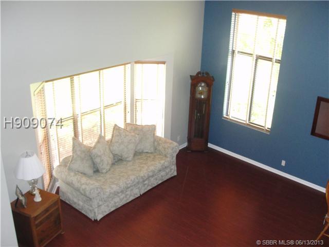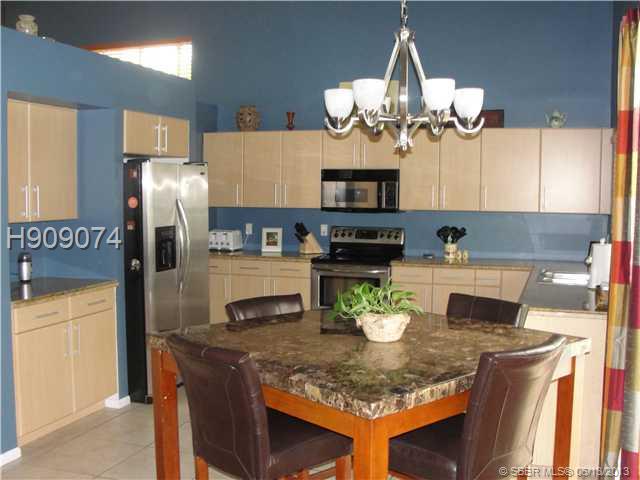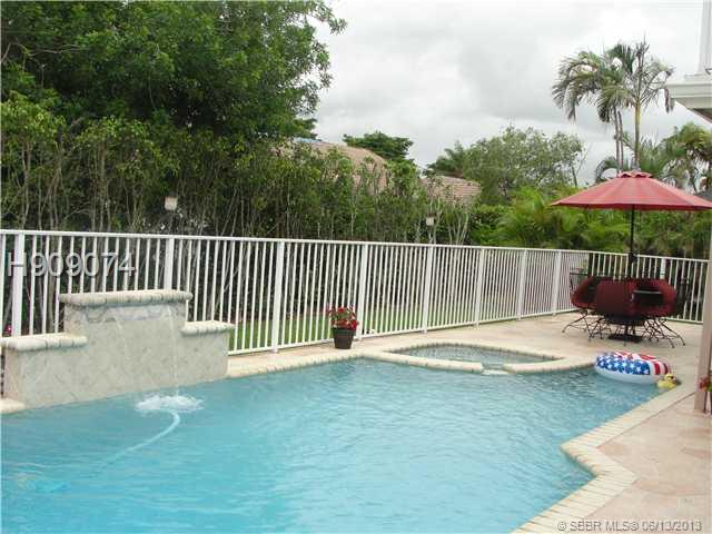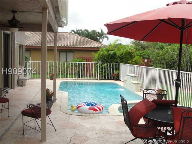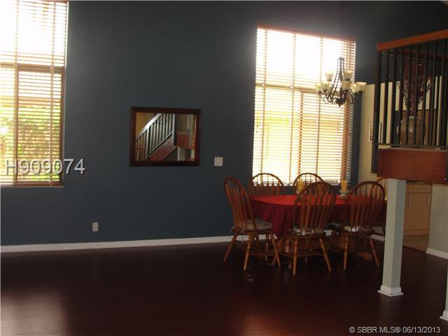Stunning large two story home with pool. Granite kitchen counters, light wood cabinets. Eat in kitchen open to family room. Gorgeous dark wood floors in formal living/dining room. Wet Bar. One bedroom and full upgraded bath downstairs. Open staircase l eads to 3 spacious rooms upstairs with 2 baths. Master has double sinks, shower and 2 closets/one walk in with built in cabinets. Balcony overlooking the pool/backyard. Laundry under a/c. Beautiful pool area with child gate/patio. Stunning home!