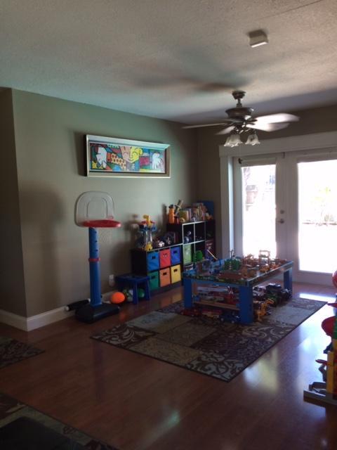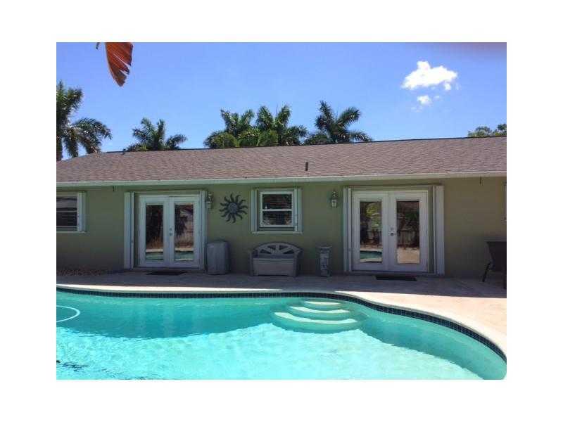 WARM and WELCOMING. Lovely four bedroom home nestled in well maintained and highly desirable family neighborhood. Custom built-in cabinetry in kitchen and family room. Wood floors throughout. 2 car garage with laundry area. Hurricane shutters. French door s open to fenced in back yard with large free-form swimming pool with ample room to relax and entertain. Split bedroom plan. Walk-in master closet with built-ins. Remodeled master bath with slate shower walls. Modern kitchen. Close to family park & shops.