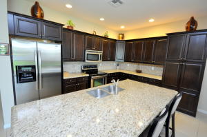 Beautiful lakefront home in the gated community of Portosol! This home features an oversized backyard with an amazing lake view and plenty of room for a pool! The gourmet kitchen is equipped with stainless steel appliances, granite counter tops and 42' wood cabinets. The luxurious master bathroom has a Jacuzzi tub and seamless shower. The downstairs den can easily be converted into a 5th bedroom. The spacious living areas have tile throughout. Expansive lake views from almost every room! Home also features a paver driveway and lush landscaping. Live the resort lifestyle in this well maintained community which features a fitness center, billiards room, outdoor basketball and tennis courts, a resort-style swimming pool and much more.