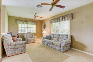 This lovely and spacious home has been well maintained and updated beautifully. Features include a renovated kitchen and both bathrooms as well as hurricane impact windows and shutters, porcelain tile floors in living areas, carpet in bedrooms,freshly painted exterior, indoor laundry room with pantry, oversized and well landscaped lot (almost half acre) with shed and irrigation system and exterior lighting, family/media room with surround sound and bar with refrigerator, screened patio, gas appliances, lots of built ins and storage. This home has been meticulously maintained and cared for and is ready to move in to. Furniture is negotiable. No HOA.