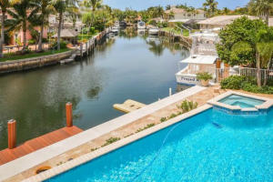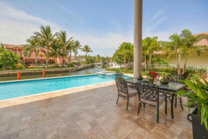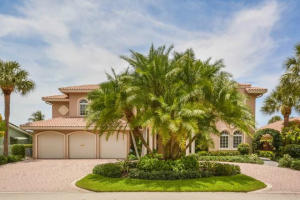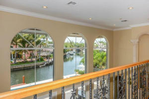 Luxury Waterfront Living at its Best! Captivating water views on a wide canal located in prestigious Golden Harbour, a boater's dream near Lake Boca Raton and minutes to the Boca Inlet. Gorgeous deepwater home features four bedrooms, six full baths, powder room, family room and a study. There is a 10x9 bonus room with a private bath and an additional side entrance on the first floor. This fabulous residence boasts soaring ceilings, saturnia and hardwood flooring, double-sided gas fireplace, floor-to-ceiling windows & doors, wet bar & elevator. Arched doorways lead to the study overlooking pool and canal. The gourmet kitchen with a center island sink has custom wood cabinetry, granite counters, Sub-Zero refrigerator/freezer, GE Monogram gas range, Bosch dishwasher and panoramic water views!