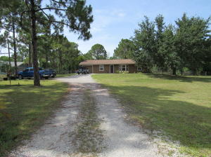 This is the one...Perfect starter home or for someone looking to downsize! Charming 3 bedrooms / 2 bathrooms situated on gorgeous 1.25 acres in the desirable Acreage area. Spacious yard boasts a Tiki Hut bar and a large cemented patio that is great for entertaining. House has an open floor plan that is light and bright. Excellent condition!