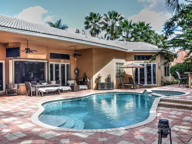 Stunning Estate Home on over half acre/waterfront lot. Tastefully upgraded and decorated with a grand foyer entrance & large circular paver driveway, spectacular gourmet kitchen with top of the line appliances including Thermador gas stove/oven, 2 sinks, pot filler, wine cooler, exquisite granite, 24" Saturnia Marble floors, gorgeous master suite with luxurious bath, large gym, game room w/ bar & home theater, gorgeous crown molding, huge covered patio overlooking lush landscape and pool area with spa!