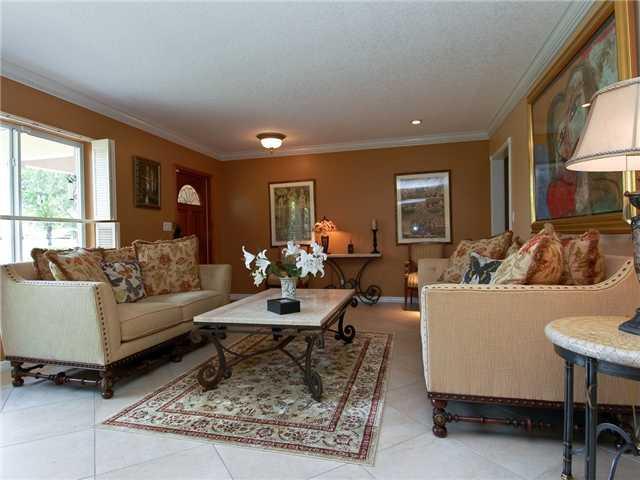 Remodeled family home located on a corner lot offers a split 3BR/2BA/2CG floor plan with preferred southern exposure. The formal living and dining room flows to large family/breakfast room and open kitchen. Additional features include: replaced baths, roof, impact windows/doors and shutters, crown moldings, 24x24 tile throughout. Outside offers a large sun drenched pool/spa, tiki hut, bar and summer kitchen with total privacy that's perfect for entertaining family and friends. Priced to sell!