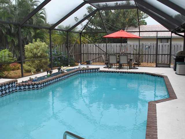 Custom built home all around that is made for entertaining, Professional sound wiring through, open floor plan, large Island kitchen with wall oven, new carpets in all the bedrooms, updated 20" tiles in foyer, laundry room with pantry. roman tub in master , Large pool with waterfall inside the fully fenced backyard newer trane AC, camera security system, beautiful landscaping, and hurricane shutters.