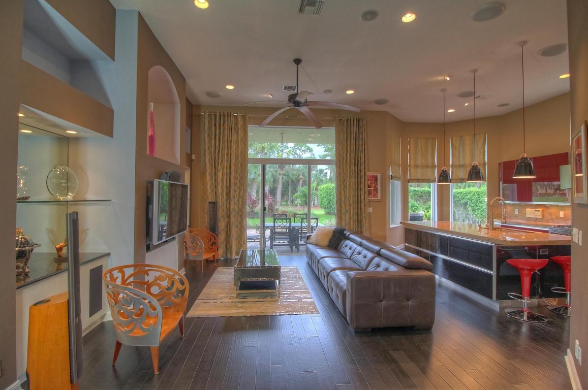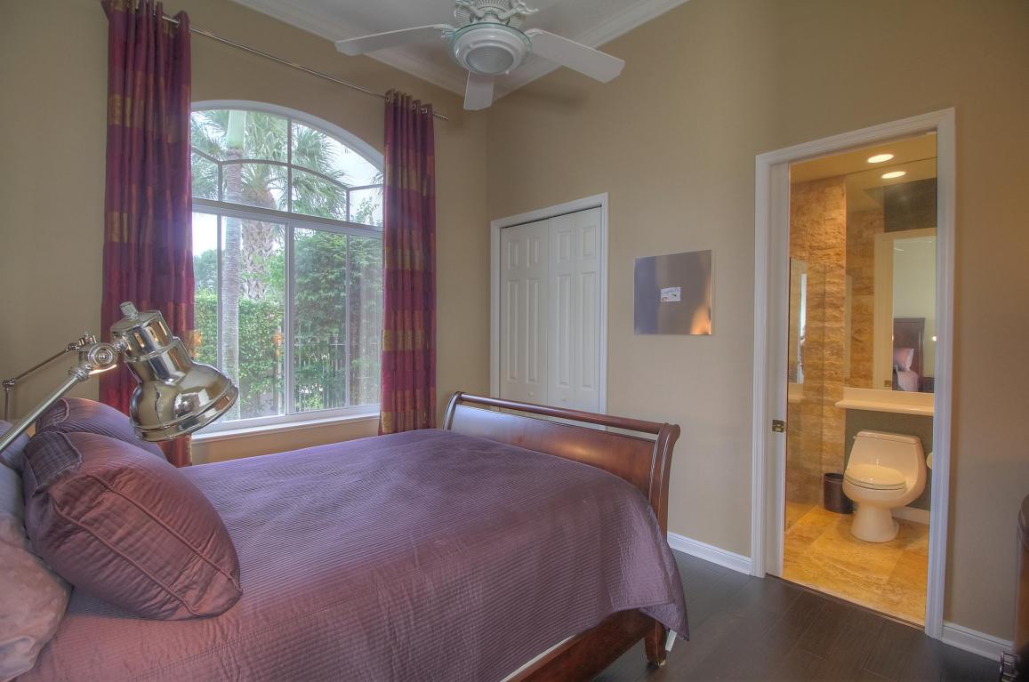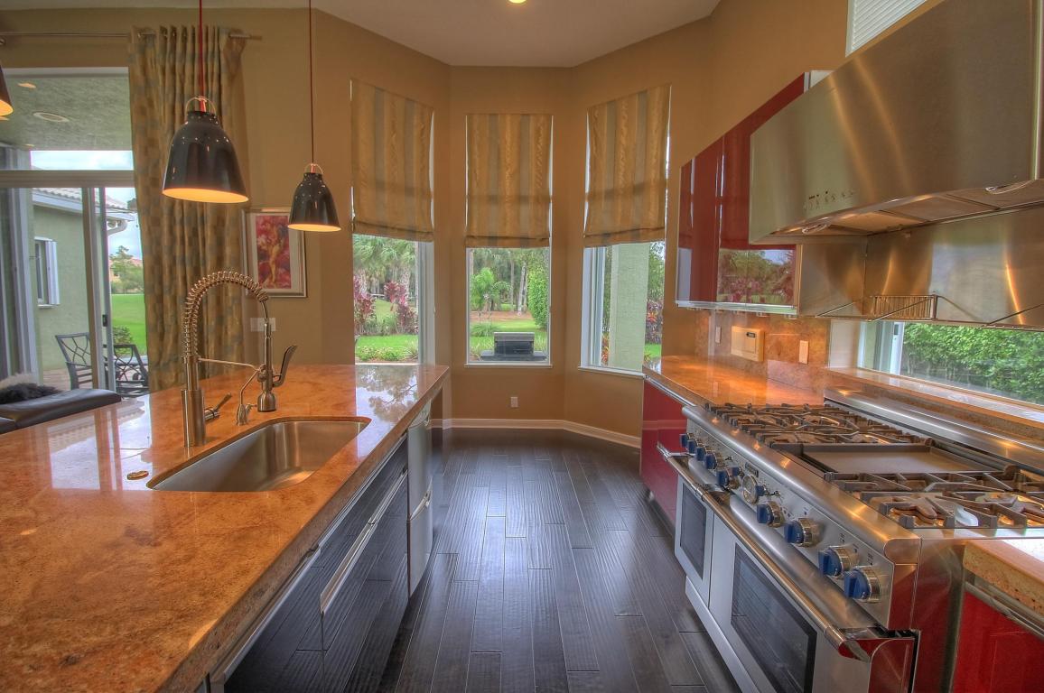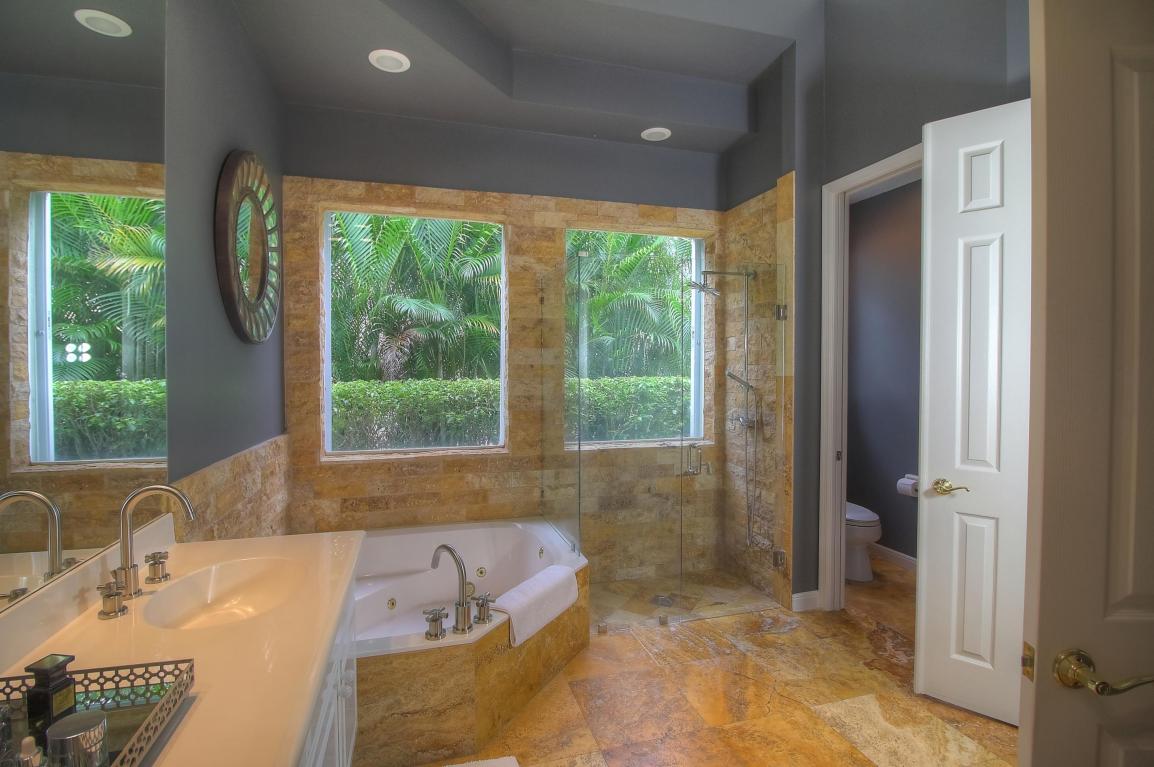 Gorgeous, very private, 3 bedroom corner lot home on the spectacular Ironhorse golf course. Each bedroom has a full bathroom. Stunning chefs kitchen with Thermador 6 burner stove with griddle, Thermador Refrigerator and 2 Fisher Paykel Dish Drawer Dishwashers. This home has been completely remodeled with gorgeous hardwood floors and travertine tile; as well as custom blinds and drapes throughout. This home has accordion hurricane shutters on all windows as well as a whole house generator. All levels of club membership are available but none are mandatory.