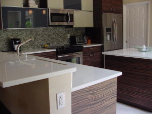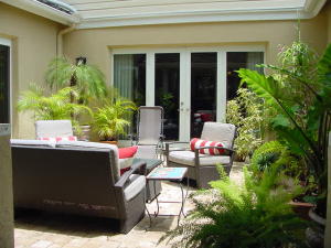 Light & open, this charming remodeled townhome of 3 bedrooms & 2 1/2 baths is neutral and tastefully upgraded featuring volume ceilings with crown moldings; beige tile floors laid on the diagonal & engineered wood flooring; a remodeled island kitchen with zebra-grain wood & glass cabinetry, white silestone countertops, glass tile backsplash & stainless steel appliances; remodeled Master Bath; walk-in closets; skylight & extra high-hat lighting; newer washer & dryer; impact glass French doors; replaced roof (about 10 years old)and an inviting courtyard with covered and open areas overlooking a spacious grassy common area.