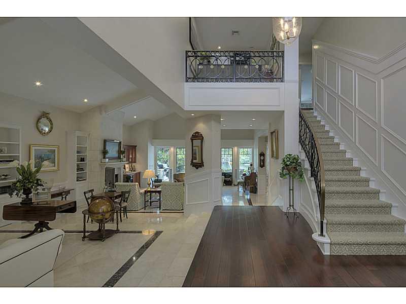 Contemporary 2-story Waterfront Home w/100 Ft on Water (60 Ft Dock). Spacious/functional living areas w/views of canal. Frmal living area/dining rm w/vaulted ceilings & luxurious wall paneling. Marble/Hardwood floors w/carpet in bedrooms. Renovated Kitch en. 2/2.5 Downstairs. Grand staircase leads upstairs w/3 private ensuite bdrms + Loft Area. Master w/Large Balcony w/architect plans to enclose. Master Bth renovated in 2013. Entertaining Patio Deck w/large pool. New Roof 2013.