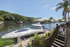 Welcome to paradise! This beautiful waterfront townhome is surrounded by a vast tropical oasis of natural landscaping and looks directly onto the marina including its own private 45 ft dock. A stunning, designer decorated and luxuriously renovated, 3 bedroom 3 full bath home, is originally four bedrooms and can easily be converted back if needed. This wonderfully spacious two story floor plan has a gourmet kitchen open to the living, family and dining rooms and is perfect for entertaining. The upstairs oversized master bedroom and luxury bath also overlook the marina and boats while the other spacious bedrooms look onto a park like setting.