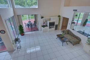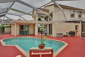 Available immediately. Beautiful private view of majestic trees of Morikami Japanese Museum & Gardens. Features: Granite counters, inspiring, 2-story ceilings, accordion hurricane shutters, huge screened patio. Pool has been resurfaced, new pump. Fruit trees: orange, lemon/tangerine, mango. HOA incl. cable, internet, lawn, paint (+phone 1st yr)! ''A RATED'' schools. Newport Bay is manned gated, requiring NO DUES/Equity and has 8 lighted har-tru courts, staffed pro shop, state-of-the-art fitness center, indoor basketball & racquetball, pingpong, yoga room & sauna. Enjoy yoga classes & water aerobics, heated Olympic sized pool, playground & clubhouse for entertaining.