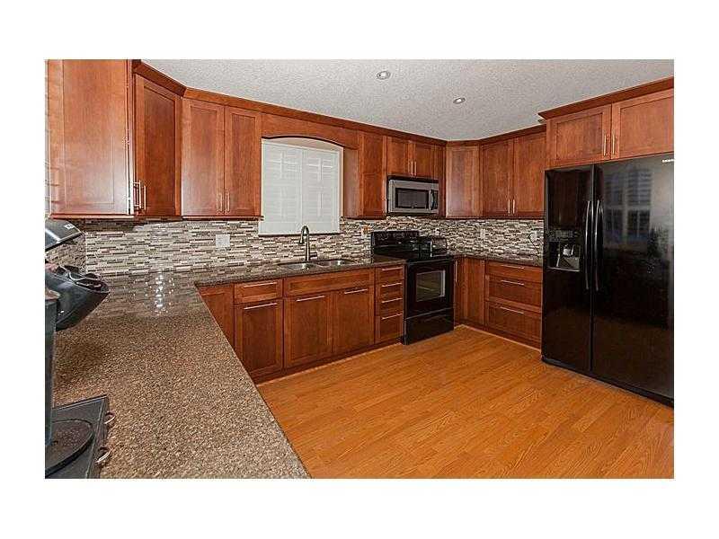 Come home to Perfection! Open & bright 4/2 lake home in gated community. Fabulous remodeled kitchen w/ cherry cabinets,granite & mosaic glass. Laminate flooring through out. Updated bathrooms,volume ceilings,recessed lighting,california closets,Plantation shutters.Freshly painted.Newer appliances and a/c compressor.Oversized fenced yard on lake with access from family room & master.Hurricane shutters. Popular community w/ 4 pools,clubhouse w/ gym,tennis plus more.Great location w/in minutes of everything.