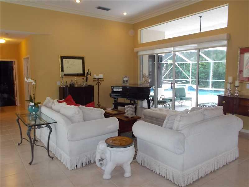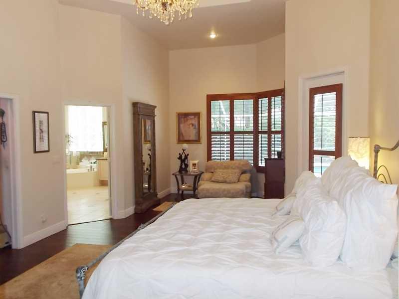 SO BEAUTIFUL & BIG! 5 BEDROOM, DESIGNER DECORATED & UPGRADES. SOUGHT AFTER TRIPLE SPLIT FLOOR PLAN. FEATURES LARGE NATURAL TILE & HAND SCRAPED DARK WOOD FLOORS. SOARING VOLUME CEILINGS W/CROWN MOLDINGS. LARGE FORMAL DINING & LIVING RM. OPEN KITCHEN/ FAMIL Y RM W/ A FIREPLACE. WOOD CABINETS, GRANITE & STAINLESS STEEL APPLIANCES. MASTER IS AMAZING, SITTING AREA, ROOM SIZE BUILT OUT CLOSET & OH WHAT A BATH! 8 FT. DOORS THROUGHOUT LEAD TO LOVELY SCREENED POOL/SPA & PATIO. GUARD GATED COMMUNITY W/ PARK, TENNIS+