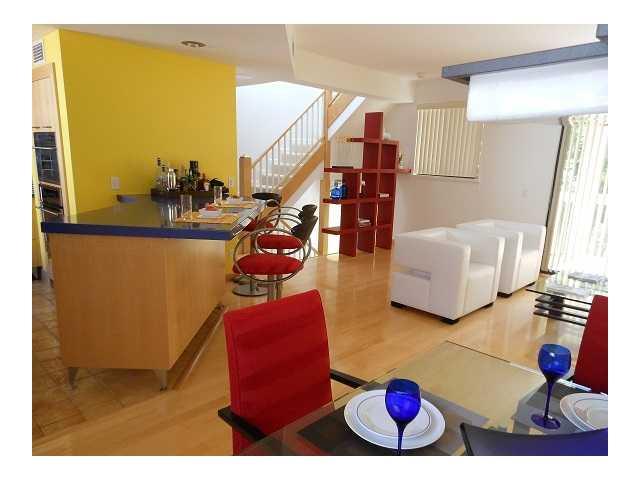Wow,from the moment you walk in,this beautiful contemporary design townhome is elegantly updated w/unique details&finishes including rich woods,ss tiles in kitchen, (Ann Sacks) tiles above stove,cobalt quartz countertops,solid maple cabinetry,pull out pan try, Fisher Paykel dishwasher and ss app. Designer lights and fans. spacious Den/office, silhouette blinds,custom closetry in master & guest rms.Wireless alarm system,solid maple flooring,carpet & tile.Privacy wall,patio & deck.Gated