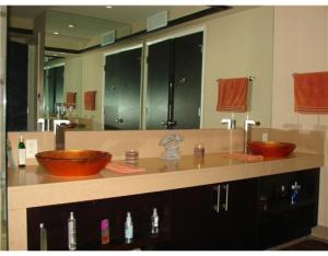 4000 sq ft, double corner lot, 3 blocks from the Hollywood Beach boardwalk. 4/4 split plan main house with mother-n-law qrts(1/1). Main house two master suites, walk in closet, custom bathroom, double sinks, large dual shower, soaking tub. Guest quarters separate entrance, full kitchen separate central heat and air. Upgraded electric full house generator. 3 new Trane AC units. Covered patio, 96 x 12, tiled. Full kitchen/barbecue outside. 9 hole putting green with 3 chipping areas. Built in heated pool with large spa and waterfall. Outside lighting system, front and back yard. Built in surround sound house and backyard. 10 foot high security wall surrounding entire backyard. ADT Security system motion and fire detectors with security cameras. PGT Hurric... (see supplement for full remarks)