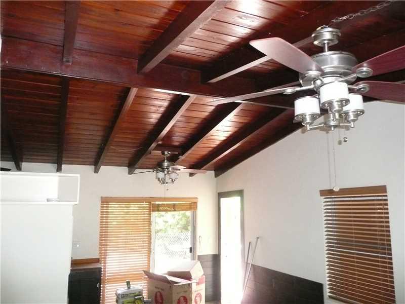 Charming move-in ready home with oversized backyard. Large patio. Updated bath and kitchen.Butcher block counters and under cabinet lighting.Stained open beam vaulted ceilings, terrazzo floors, custom blinds and ceiling fans throughout. Newer roof,windows ,upgraded electric, central A/C and heat.Newer electric fridge, range and stackable W+D.Two tankless electric water heaters.Water saver toilet.Fenced yard. Paver drive and walks. Hurricane shutters.Transferrable termite contract.Can be shown approx. 7/11.