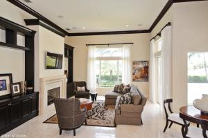 Step into this beautifully-maintained model-perfect home with many builder upgrades and beautiful golf course views. This property features 4 bedrooms plus den with 3.5 baths, wood built-ins in den and family room, crown molding, designer ceilings, marble floors, gas, decorative fireplace and surround sound throughout the inside and exterior. Kitchen features new stainless-steel 2014 appliances including Sub Zero refrigerator, a 6-burner Viking gas range, granite counter-tops and wine refrigerator. New washer, dryer and a/c unit installed in 2015. This home features extensive landscaping and wonderful curb appeal, is ''move-in ready'' and won't last long!