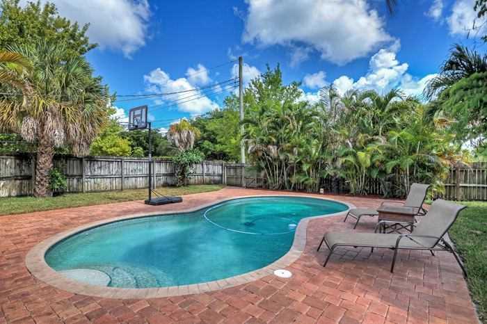 Move right in to this beautifully updated Hollywood Hills home! This spacious 3BR/2BA home features a huge open kitchen with granite counters & lots of storage, master bedroom with ensuite bath & walk-in closet, laundry room with additional bonus/storage room, and a light & bright Florida Room with French doors leading to large covered patio, fenced yard and sparkling free-form pool. A lovely landscaped yard and stamped concrete driveway create welcoming curb appeal to this lovely turn-key home.