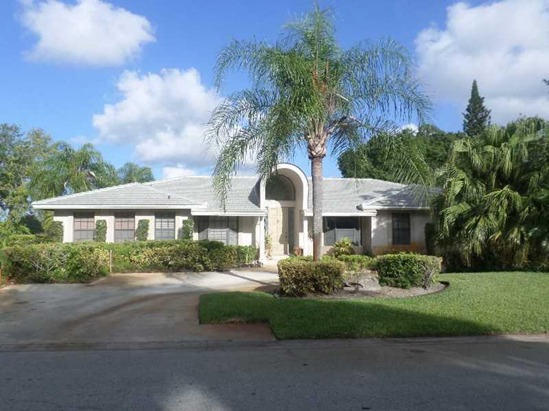 Spacious four bedroom three and a half bath Home overlooking the 14th tee and fairway. New Roof just completed, Newer AC and duct cleaning with 10 year warranty. Gaggenau and Miele appliances in the updated kitchen. French doors leading to the oversized f enced paver patio with open pool. Huge family room with electric fireplace. Two master bedrooms each with large cabana bathrooms, one with Jacuzzi tub. Chandelier not included No HOA fees. Great family area close to parks, shopping, and restaurants.