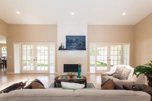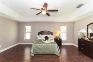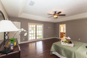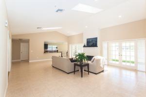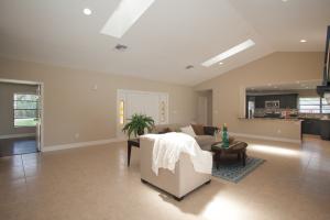 Stunning newly renovated 4 bedroom, 2 bath pool home situated on over 1.5 acres with a lake view. A HIDDEN GEM! Vast open floor plan with an abundance of natural light streaming in from french doors, large windows and skylights. Gorgeously remodeled kitchen features mocha custom cabinetry with tons of storage space, granite countertops, decorative glass backsplash, double bowl sink and stainless steel appliances. Spare bathroom is truly one of a kind. Two separate floating wall vanities with white vessel sinks and faux wood porcelain tile flooring. Spacious master bedroom with tray ceiling and large en suite with roman tub and dual vanity. New wood laminate flooring in bedrooms and ceramic tile throughout living area. This home is a MUST SEE and is sure to impress.