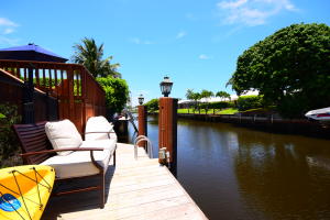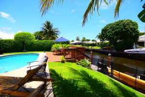 Spectacular waterfront home in prestigious Camino Gardens neighborhood. Enjoy paradise - tropical landscape, new deck, overlooking beautiful water, privacy hedges and a yard with room for a swing set. New gourmet kitchen features, granite, unique chicago brick backsplash, self close cabinets, appliance garage, lazy susan/pull-outs for extra storage, custom cabinets, stainless appliances and decretive edison bulb light fixtures. Olde Dutch/European Oak wood floors gives this home warmth and character. Crown molding throughout and chair rail in the living room. Updated bathroom with double shower heads. Impact doors and windows. Sliders in the back pocket all the way for maximum exposure to the outside pool and water view. Also, french doors add charm & access to the back yard/deck/water.