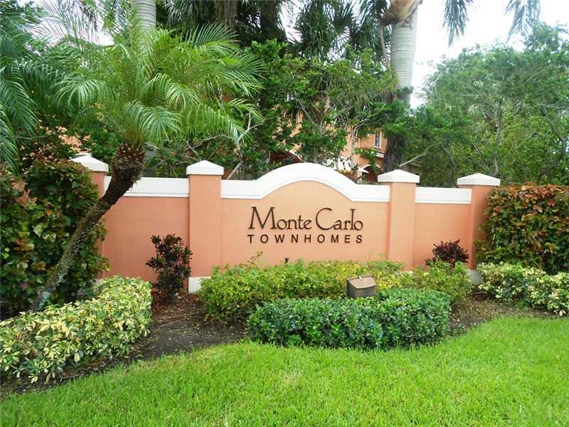 Updated 3 bd, 2 & 1/2 bath corner Monte Carlo Townhome in Pembroke Pines. This home is in impeccable condition. Enjoy spacious living area, wood kitchen cabinets, granite counter tops, stainless steel appliances, crown molding, updated master bathroom w ith 2 sinks, extra storage underneath stairwell, accordian shutters, and fantastic outdoor patio.