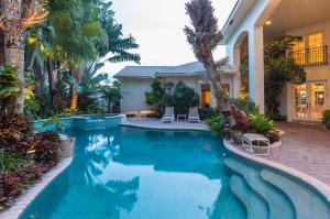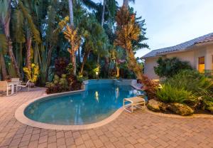 Step into this impressive private tropical courtyard pool home with covered lanai offering long lake views, an outstanding guest house, summer kitchen and spa and is situated on a corner lot adjoining a grassy knolled parkette of common area. The home's lush landscaping teems with orchids, bromeliads and exotic flora and is enhanced with extensive landscape lighting, multi color pool lighting for an evening'wow factor'. Cathedral ceilings offer dramatic views of the lake from many points. The downstairs master bedroom feels like a tropical retreat providing a sitting area with french doors that open directly to the pool. Master bath is surrounded with beautiful greenery and enhanced lighting. Surround sound makes this the
