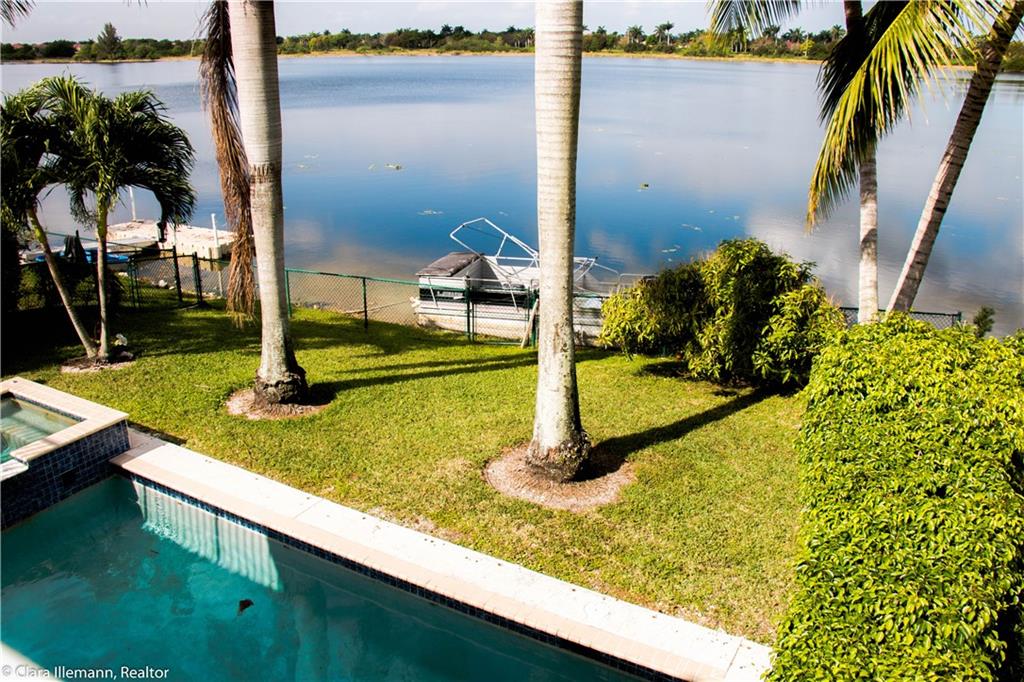 Truly beautiful home, enjoy breathtaking overlooking wide lake view with fabulous fishing boat included. 5 bed. Master with big open balcony overlooking the gorgeous long range water views. All Bathrooms are fully renovated with remarkable beautiful til e. Second floor has brand new wonderful flooring. First floor in travertine marble stone. French doors. New, beautiful modern staircase. large heated pool, Spa, Accordion shutters, Security camera system."A" Rated Schools. Home in excellent conditions.