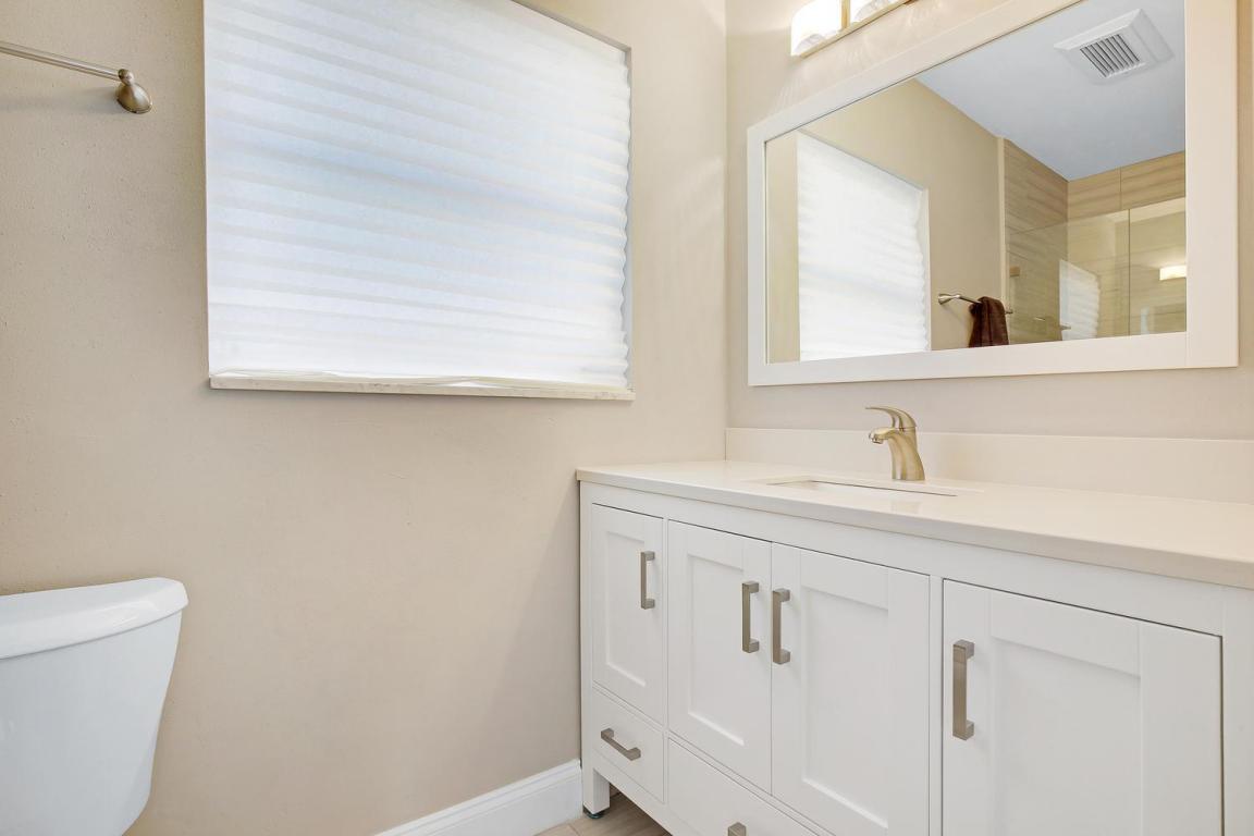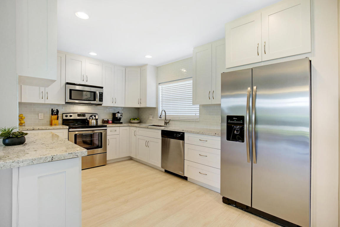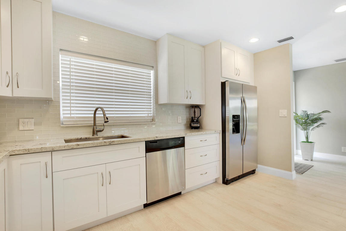 PRICE REDUCED!! TOTALLY RENOVATED 3 bedroom, 2 bath home in one of East Boca's most sought-after neighborhoods, Boca Raton Square! Quiet street! Newer Roof, Newer A/C, Freshly Painted Inside and Out, Accordion Hurricane Shutters, a spacious 1-car garage w/ storage and interior laundry! This stunning renovation features new high-end hand scraped wood look flooring throughout, new kitchen with granite counter-tops, white shaker cabinetry with soft-close doors/drawers, and stainless steel appliances. Split floor plan has 3 spacious bedrooms, 2 bathrooms, and 1,600 square feet under air. Large screened patio accessible from the living room and 3rd bedroom. Private fenced backyard is perfect for pets and children! **Excellent school district (Addison Mizner Elementary)** See addenda..