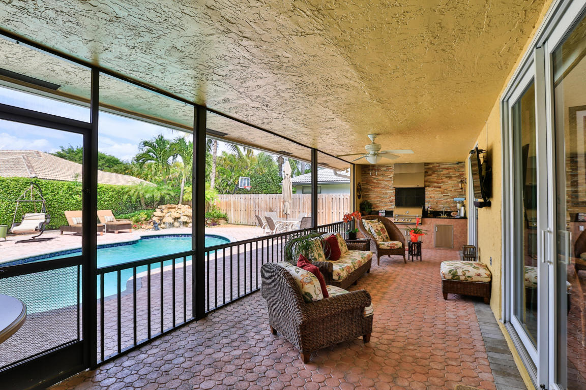 Gorgeous 4 bed 3 bath 2 car garage pool home located on a Cul de sac with extra large lot A+ school district. This home features an amazing kitchen with all new stainless steal appliances & Granite counter tops.House has all impact windows and doors included sliders throughout will pass mitigation roof 2007,Master bathroom fully redone in 2012 with jacuzzi Whirlpool tub and shower with body jets. Home is wired for sound throughout home security cameras and all high efficiency led lights. Resort style backyard with kidney shaped pool with rock waterfall feature,Covered lanai with out door kitchen,back yard has turf grass.Large master bedroom with sitting area or den attached to room,has state of the art closet system that you would find in a million dollar home.
