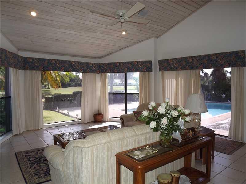 DESIRABLE PINE RIDGE! 4 BEDROOM, 2 BATH + 2 HALF BATHS WATERFRONT POOL HOME WITH 3 CAR GARAGE!!! CUSTOM BUILT FOR ORIGINAL OWNER - BEAUTIFULLY MAINTAINED. OPEN & BRIGHT FLOOR PLAN WITH VAULTED CEILINGS, HUGE MASTER BEDROOM WITH WALK-IN CLOSET, MASTER BA TH WITH SEPARATE TUB & SHOWER, SPLIT 2 ZONE A/C & ACCORDIAN SHUTTERS. WALK TO ELEMENTARY SCHOOL, ALL SCHOOLS NEARBY. CONVENIENTLY LOCATED NEAR SAWGRASS EXPRESSWAY.