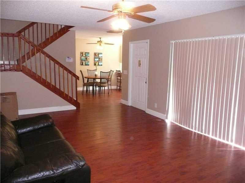 Beautifully maintained - move in ready! 2 bed/2.5 bath corner townhouse. Stainless steel stove, microwave and dishwasher, Laminate wood floors, Accordian hurricane shutters, sliding doors to private courtyard, large bedrooms with large closets and balc onies, double sinks in master bath. Roof replaced about 10 years ago. Maintenance includes insurance. Walk to community pool & parks. All ages, pets welcome. Prestigious Jacaranda Central Park community. Not a short sale or foreclosure!