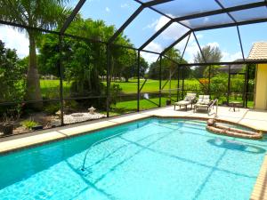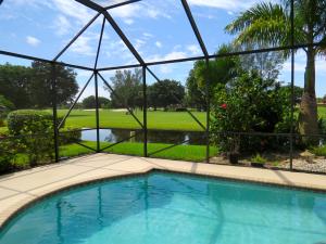 3 Bedroom plus Den in the desirable non equity golf course community of Boca Greens. Located on the second hole with water views this home has many upgrades.Custom remodeled kitchen with wooden cabinets, pullouts and high end granite. beautifully tiled remodeled bathrooms with decorators touch(porcelain tile, frameless shower doors etc). brand new exterior paint and accordion shutters. Two windows are getting impact glass any day now. Huge covered patio area next to your screened-in, heated pool where you can entertain and watch the golfers tee off. Main A/c was replaced 3 years ago and roof was done in 2006. Custom wet Bar/wine fridge in the enormous great room with soaring 22ft vaulted ceilings. This is a must see if you're looking in the area! 4th bedroom is a den(no closet).
