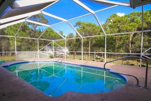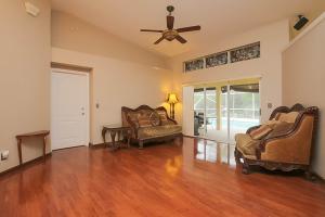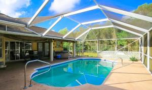 Beautiful Pool Home for Sale in West Palm Beach Florida! Situated on a private 1.15 acre lot this fully fenced one story home features 4 Bedrooms, 3 Bathrooms and a 2 Car Garage. Upon entering the double doors you will be greeted by a open foyer that flows seamlessly into the formal living room and dining room. Perfect for entertaining the formal areas are open to one another and feature wood floors, vaulted ceilings and a sliding glass door that leads out to the covered and screened patio and private swimming pool. The kitchen offers wooden cabinetry, granite countertops, a tile backsplash, breakfast bar and pantry. The kitchen overlooks a breakfast nook and family room, which also has vaulted ceilings, hi-hats and a french door that leads out to the patio area.