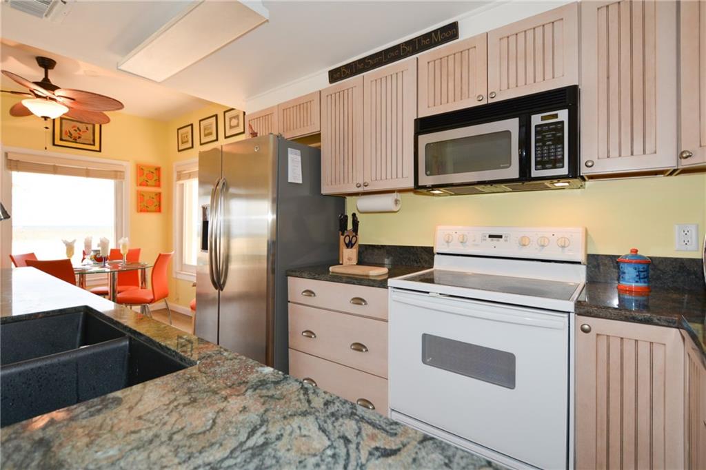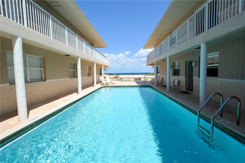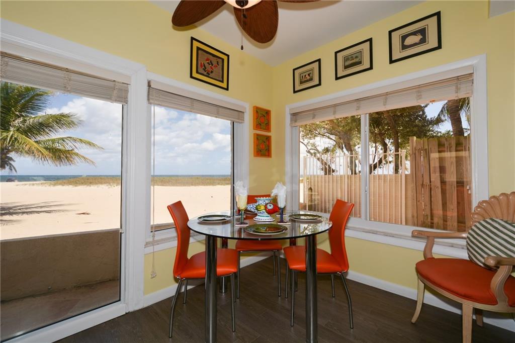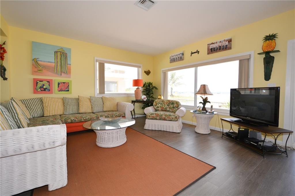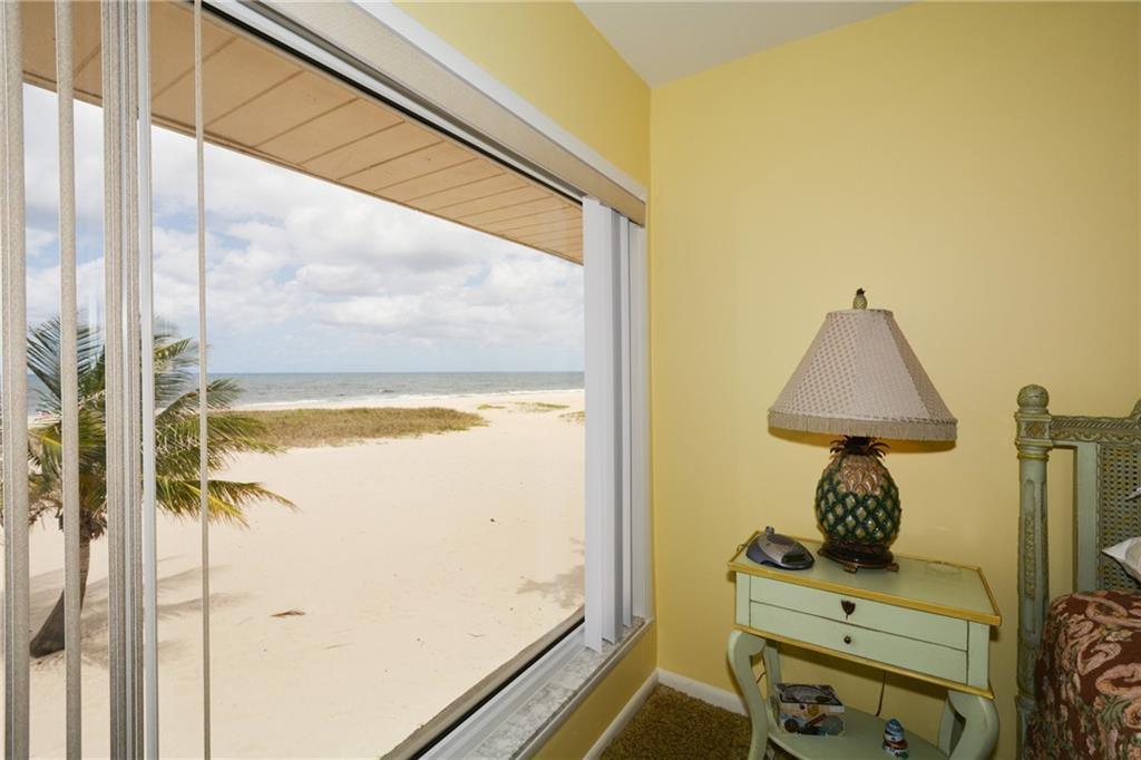 This view is WOW from every IMPACT GLASS WINDOW that surrounds this END unit SMACK ON THE SAND! Elegant & TASTEFULLY UPDATED throughout. Gorgeous granite counters in kitchen & both baths, wood cabinets, SS appliances (except fridge). Laundry rm & full bath ground floor & "wood"-look ceramic tile floors. Surrounded by patios for outside entertaining, pool & sandy beach steps from your door. Watch the sunrise over the Atlantic from your pillow & end your day with beautiful sunsets. PERFECT BEACH FRONT HOME