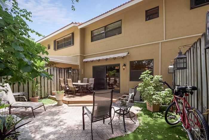 Charming, beautifully landscaped complex East of Federal Hwy in great neighborhood. Spacious, light filled home. High Impact windows & sliding doors. Large, decked back yard, privacy fence--grill, dine, entertain, relax & enjoy. Beautiful marble and neutr al carpet. Coral rock fireplace. Two master suites. In-unit washer & dryer. Large walk-in closets. Dining area chandelier & sconces do not convey. Close to Las Olas, downtown, beaches. Pet friendly, two dogs, non-aggressive breeds. 25% down payment.
