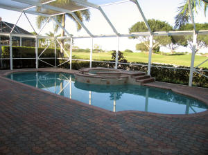 The Perfect Ibis Location at The Perfect Price! Greenside & Water Views of Legend #16! Open Great Room Plan with Spectacular Views from Great Room, Master and Den! Outstanding Outdoor Entertainment Area with Covered Patio, Pool & Spa all Under Screen! Kitchen with Granite, Under Cabinet Lighting and Breakfast Nook. Master with Coffered Ceiling, Plantation Shutters and Double Walk-In Closets with Organizers. Master Bath has Separate Roman Tub and Shower, His & Her Sinks and Atrium View. Guest Suite with Private Bath, Walk-In Closet and Sliders to Atrium Garden Area. Third Bedroom is secluded with access to the Third Bath. Indoor Utility Room has Cabinets and Sink. The Two Car Garage has Golf Cart Storage. This Home is A Must See! Ibis is a Mandatory Membership Community. 40K.