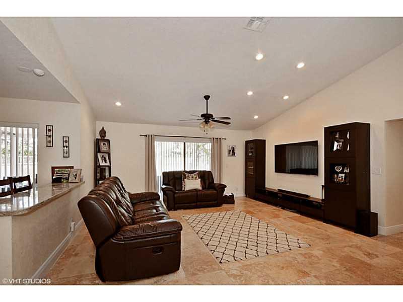 THIS ONE IS A WOW!!! BEAUTIFULLY REMODELED 4-BEDROOM, 2-BATH HOME WITH POOL AND LARGE FENCED YARD. FEATURES INCLUDE GOURMET GRANITE KITCHEN W/ WOOD CABINETS * STAINLESS STEEL APPLIANCES * TRAVERTINE MARBLE FLOORS THROUGHOUT LIVING AREA * WOOD FLOORS IN B EDROOMS * UPGRADED BATHROOMS WITH GRANITE COUNTERS * 2 WALK-IN CUSTOM CLOSETS IN MASTER BEDROOM * LARGE COVERED PATIO * ROOF IS 2.5 YEARS NEW * HURRICANE SHUTTERS * AND LOW HOA * A MUST SEE!