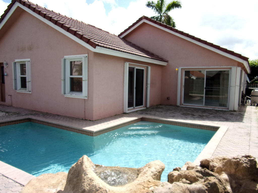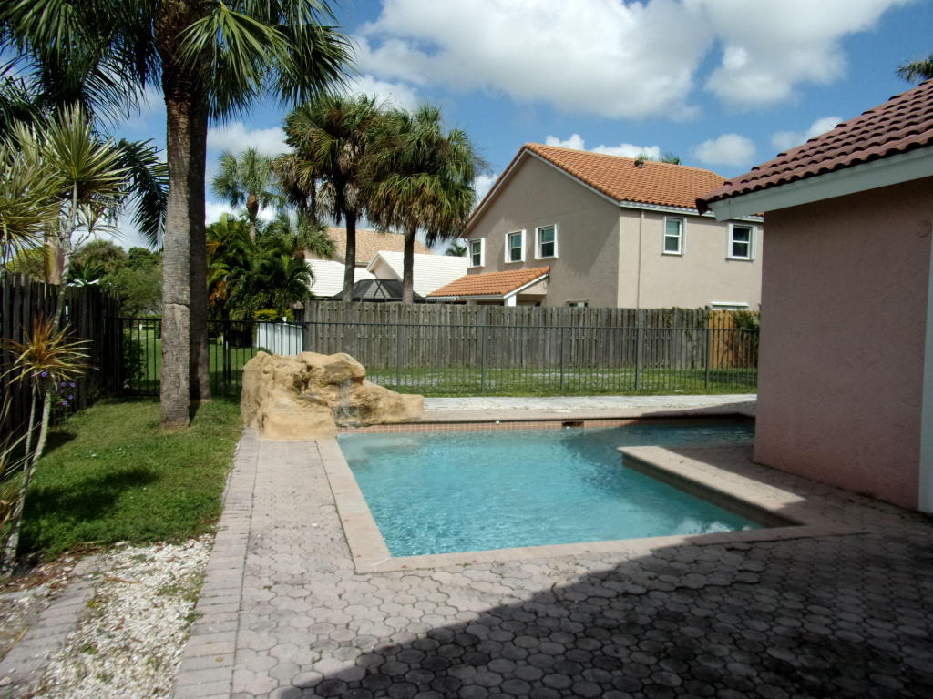 JUST REDUCED!!!!LOVELY 3 BEDROOM 2 BATH POOL HOME WITH WATER VIEW FROM BRICK PAVED PATIO.NEEDS UPDATING & SOME WORK.NEWER FRIDGE & AIR CONDITIONER.HUGE FAMILY KITCHEN & GREAT ROOM.TILE & WOOD FLOORS THRU-OUT.ACCORDION SHUTTERS. ALARM W. INTERCOM & MUSIC SYSTEM THRU-OUT.GARAGE IS CONVERTED TO EXTRA ROOM, WALL IS EASILY REMOVED. HEATED POOL WITH FOUNTAIN. 4 CAR DRIVEWAY. THERE IS A COMMUNITY POOL AS WELL.CLOSE TO FABULOUS SHOPPING