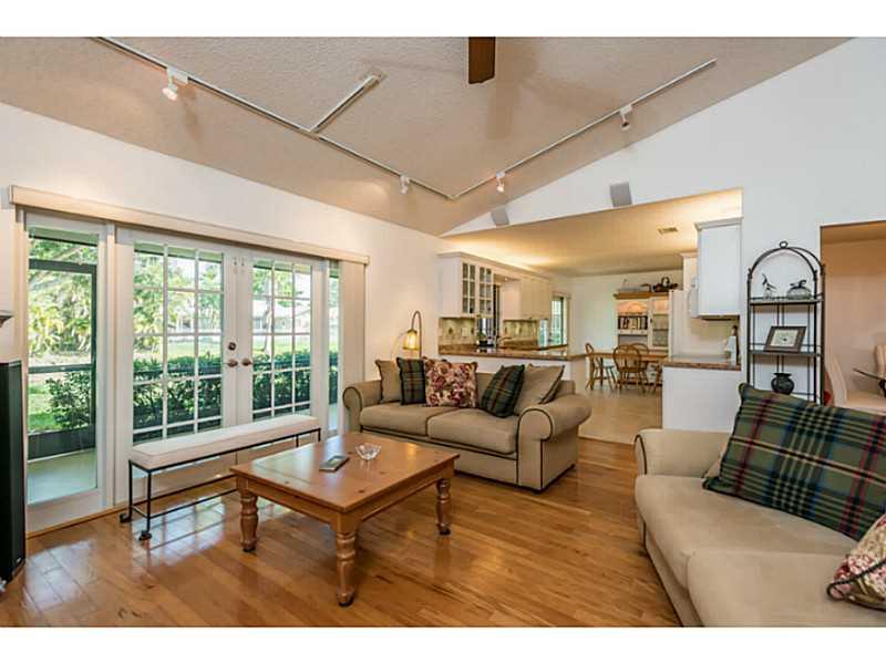 Calm and relaxed is how you'll feel when you enter this beautifully updated water front home. Vaulted ceilings offer a spacious entertaining and living area with an open kitchen and full patio views. Decorated with real wood floors in living areas, tile i n kitchen and baths. Clean neutral carpets warm up your bedrooms. Beautiful white kitchen cabinets with granite countertops. Hurricane impact French doors, A/C 2009 3.5 ton high efficiency. Great location, excellent schools! Priced to Sell move right in.