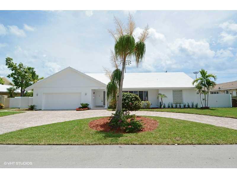 Stunning , bright and spacious house with modern look in Coral Ridge area. New floors throughout the house, beautiful kitchen with a center isle and all new stainless steel appliances. The living room and dinning area overview the pool through large hur ricane impact windows. A 4/3 house with 2 car garage, separate laundry room,paved circular driveway. Great fenced backyard with a oversized pool an lots land. All furniture and TV's are included. Best location,1.5 miles from the beach,near good schools.