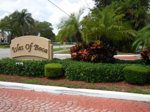 Huge, 3 bedroom and 2 car garage town home located in south central Boca Raton in the community of Isles of Boca with private view of the canal/trees. Over 1900 liv sqft under air, soaring 2 story ceilings in living room, tiled floors downstairs. AC approx 2.5 yrs, HWH -5 yrs, washer/dryer -2 yrs. COMPLETE SET of Hurricane Shutters, hurricane rated garage door. 2006 ROOF. Monthly association fee includes: Insurance,roof, lawn, cable, water & sewer, painting of the exterior, security system monitoring. 2 pets ok, less than 20 lbs each. 'A' rated schools nearby! Also the Swim and Racquet Center nearby for additional outdoor fun.