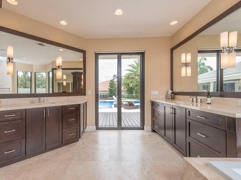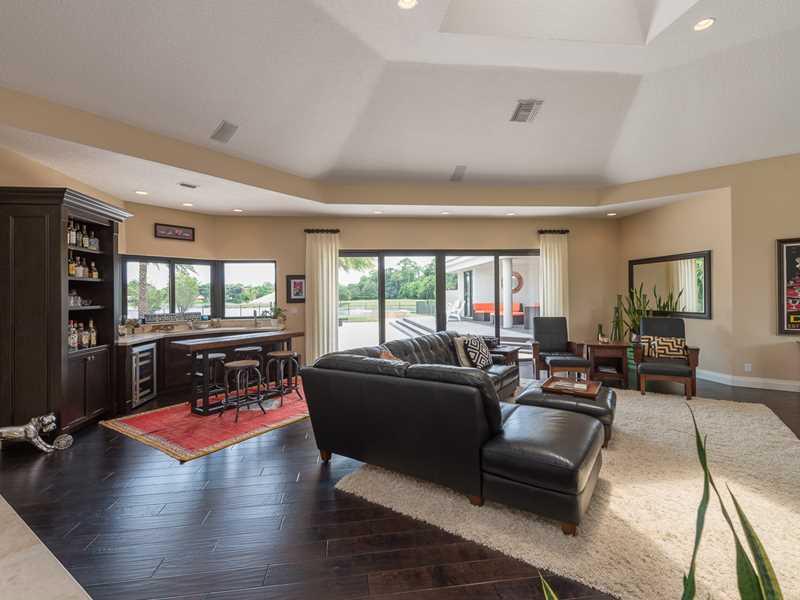 Amazing water view overlooking park! Incredible open floor plan & unmatched craftsmanship, detail and design. Complete remodel since 2011 w/the best finishes inc; custom cabinetry, wood floors, marble, tile, state of the art appliances, gourmet kitchen w/ large center island, custom milled molding(s)and carpentry, impact windows and doors. One-of-a-kind back yard entertainment area with a 20' X 40' resort-like heated pool, spa, huge patio, gazebo & pergola. House looks brand new. Must see to believe.